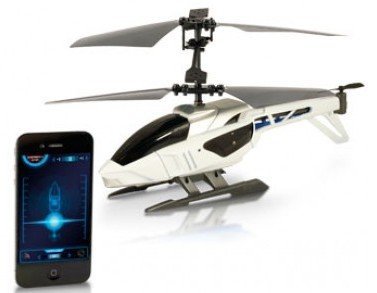 Fly it! Full gesture control allows you to fly the heli with the tilt of the controller. Three different modes allow users to build their skill. Full gesture control is incredible. Lift the iPod/iPhone up to raise the heli in the air. Move your iDevice forward and the heli flies forward. Bring the iDevice back and the heli flies backward. Tilt right or left - turn right or left. Partial Gesture control, and Virtual Joystick modes are also built into the it and Hear it! Force feedback delivers the rumble of the rotors in your hands that increases as you go faster. Sound effects deliver the buzz of the engine. Experience it! The app design reflects a heli flight simulator. Hobby grade 3-channel signal delivers controls for up-down, forward-backward, and left-right steering. Variable speed rotors give you the real feel of flying. Multi color super bright LED spotlight can be triggered from the app. And it is all packaged in a high tech, light weight but super durable body. Only real flying comes this close. The power is in your hands!