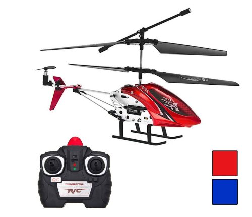 This 3 channel RC Helicopter is one of the easiest to fly. The 3 Channel feature provides for greater maneuverability and control as compared to a 2CH RC Helicopter. With the wireless remote, you can go up, down, left, right, forward and back. Accompanied by a built-in rechargeable battery, this RC Helicopter provides hours of enjoyment for children and adults alike Some Cool Features: Wireless remote control helicopter Full metal frame withstands rough landings 2 main rotors Up/down, left/right flight Steady aviation Built-in rechargeable battery Long flight time LED lights 3-channel Requires 6 AA batteries Recommended ages 14+ Please Note: Unit charges via Cable Built In to the Remote The Repeller 3-Channel RC Helicopter including: The Repeller 3-Channel RC Helicopter (Choice of Blue or Red) Remote Control Extra Propellers Manual
